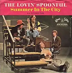 "Summer in the City" is a song by the Canadian-American folk-rock band the Lovin' Spoonful. Written by John Sebastian, Mark Sebastian and Steve Boone, the song was released as a non-album single in July 1966 and was included on the album Hums of the Lovin' Spoonful later that year. The single was the Lovin' Spoonful's fifth to break the top ten in the United States, and the only one by the group to reach number one. A departure from the band's lighter sound, the recording features a harder rock style. The lyrics differ from most songs about the summer by lamenting the heat, contrasting the unpleasant warmth and noise of the daytime with the relief offered by the cool night, which allows for the nightlife to begin.
