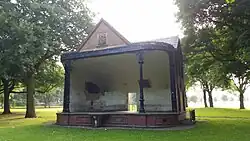 Summerfield House and grounds were acquired by Birmingham Corporation, who laid out a public park, which was opened on 29 July 1876 by the Mayor of Birmingham, Alderman George Baker. The park, originally of 12 acres (4.9 ha) was increased in size in 1890 and 1892, but the house had been demolished by 1894. Summerfield was the sixth municipal park opened in Birmingham after Adderley Park, Calthorpe Park, Aston Park, Cannon Hill Park and Highgate Park. From 1968 to 1970 the park was the venue for an annual one day international jazz festival organised by the city council. Musicians appearing included bands led by Chris Barber, Humphrey Lyttleton and Monty Sunshine.[2] The park hosted council run Guy Fawkes night bonfire and fireworks 'carnivals' from 1961[3] until the early 1980s. Summerfield Park has an area of 25 acres (10 ha) and features a bandstand built in 1907.[4][5][6] The former Summerfield police station on Dudley Road stands beside the park.[7]