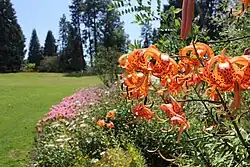 The centre was founded in 1914 as the Dominion Experimental Farm at Summerland. It was renamed as the Summerland Research Station in 1959 after the addition of plant pathology and entomology laboratories,[2] and later combined with a nearby experimental farm (at Agassiz, British Columbia) to form the Pacific Agri-Food Research Centre in 1996.[3] The centre was originally founded to research the suitability of different plant and animal species to local growing conditions, but later branched into plant pathology as well.[4] Early in its history, the centre also had an ornamental horticulture department, beginning with a garden laid out in 1916 that grew into a 6-hectare English landscape garden. As the centre's priority shifted to tree fruits, this program was phased out, and in 1991 care of the ornamental gardens was taken over by a local garden society.[5]