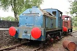 5 Barclay 0-4-0DH 1966 472 Red Open air display alongside mainline railway.