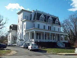 Summit is a historic home located in Catonsville, Baltimore County, Maryland. It a large brick house, once part of a country estate owned by James Albert Gary.[2] It features a three-story Italianate tower and large wing extending to the rear. The main façade is three stories and five bays wide, with the tower located on the east side. A one-story porch with square columns and railings runs across the full façade. The mansion was built originally as a summer home and later converted to apartments after its sale to the Summit Park Company in 1919.[3]