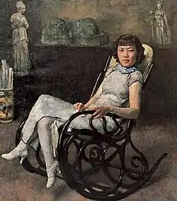 Sun had originally intended to study literature after completed her schooling at Anqing Girls School but she failed the entrance examination National Central University.[1] In 1930, Sun Duoci audited classes in the fine arts department of Nanjing Central University during which time she was introduced to another famous painter, Zong Baihua.[4] who was impressed by her talent. She took lessons from Xu Beihong. The art professor with a wife and family regarded Sun as a "painter of genius".[3] He admired her work and invited her to pose for paintings.[1] Xu shared the news of his new love with his wife Jiang Biwei in 1930 who decided to not make this an issue (Jiang was betrothed to someone else before she eloped with Xu). Xu was now a Professor of Art at National Central University.[5]