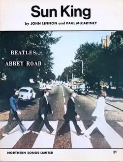 "Sun King" is a song by the English rock band the Beatles from their 1969 album Abbey Road. Written by John Lennon and credited to Lennon–McCartney, it is the second song of the album's climactic medley. Like other tracks on the album (notably "Because") the song features lush multi-tracked vocal harmonies, provided by Lennon, Paul McCartney and George Harrison.