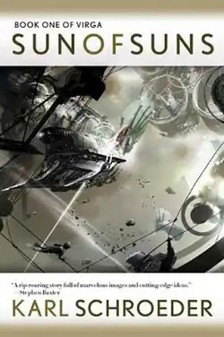 Sun of Suns, Book One of Virga, is a science fiction novel by Karl Schroeder, published by Tor in 2006. It is set in the fictional world of Virga, a world devoid of gravity containing multiple artificial stars, a fullerene sphere filled with air, drifting rocks and nations floating around Candesce (the eponymous "Sun of Suns"). The story focuses around three main characters: Hayden Griffin, Admiral Chaison Fanning, and his wife Venera Fanning. The sequel to the book, Queen of Candesce, was released in August 2007.