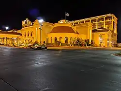 The resort included a Mediterranean theme.[19][20] The casino consisted of 78,000 sq ft (7,200 m2),[9] with 48 table games, including blackjack, craps, Mini-Baccarat, pai gow poker, and roulette.[19] The casino pit was overlooked by gold and purple neon lighting.[20] The casino also included a large race and sportsbook; and a 600-seat bingo hall, which was expected to appeal to local residents.[19] More than 2,100 of the Suncoast's slot machines, approximately 96 percent, were coin-free,[21] with only 200 regular slot machines.[22] The Suncoast and the Fiesta were the first major resorts in Nevada to utilize the concept of coinless slot machines,[21] with the Suncoast being the largest to test the new technology.[22]