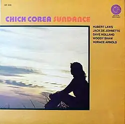 Sundance is a studio album by jazz pianist Chick Corea, recorded over three days in May 1969 and released on Groove Merchant in February 1972. The album Is (released three years earlier) included material from the same sessions.[3] The album features a septet with trumpeter Woody Shaw, tenor saxophonist Bennie Maupin, flautist Hubert Laws, bassist Dave Holland and drummers Jack DeJohnette and Horace Arnold.