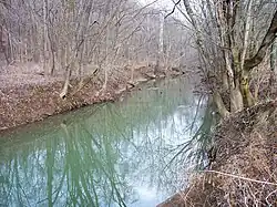 Sunday Creek is a tributary of the Hocking River, 27.2 miles (43.8 km) long, in southeastern Ohio in the United States. Via the Hocking and Ohio Rivers, it is part of the watershed of the Mississippi River, draining 139 square miles (360 km2) in a mainly rural area of the Allegheny Plateau region.[7] Its name is locally said to derive from early white settlers who in 1802 reached the creek on a Sunday, and so named it after the day of their discovery.[8] (also see nearby Monday Creek.)