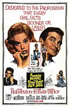 Sunday in New York is a 1963 American romantic comedy film directed by Peter Tewksbury from a screenplay by Norman Krasna, based on Krasna's 1961 play of the same name. Filmed in Metrocolor, the film stars Cliff Robertson, Jane Fonda, and Rod Taylor, with Robert Culp, Jo Morrow, and Jim Backus. The score was composed and recorded by Peter Nero, who also appears as himself performing in a nightclub; Mel Tormé sang the title song.