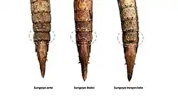 | Relationships of the four Sungaya species or stocks and their sister genera investigated so far according to Sarah Bank et al (2021),[9] species assignment according to Frank H. Hennemann (2023)[1] |