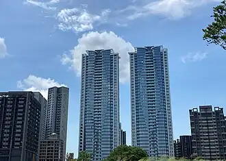 The Sunland 41 (Chinese: 森聯摩天41; pinyin: Sēn lián mótiān 41) is a complex of residential twin skyscrapers located in Linkou District, New Taipei City, Taiwan. The towers each have an architectural height of 160.8 m (528 ft), with 41 floors above ground as well as three basement levels and a combined floor area of 99,816 m2 (1,074,410 sq ft).[1][2] The towers were designed by Taiwanese architectural firm TMA Architects & Associates and Japanese architect Kenzō Tange and were completed in 2020.[3][4][5] After its completion, the complex became the tallest in the district, surpassing the previous title holder Skyline Landmark. As of January 2021, the towers are the ninth tallest in New Taipei City.[6][7][8][9]