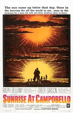 Sunrise at Campobello is a 1960 American biographical film telling the story of the struggles of future President of the United States Franklin D. Roosevelt and his family when Roosevelt was stricken with paralysis at the age of 39 in August 1921. Based on Dore Schary's 1958 Tony Award-winning Broadway play of the same title, the film was directed by Vincent J. Donehue and stars Ralph Bellamy, Greer Garson, Hume Cronyn and Jean Hagen.