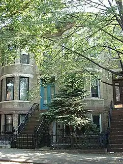 Though many row house districts in New York City housed wealthy professionals and businesspeople, Sunset Park was developed as a middle-class area, with most residents being either mid-level professionals (such as clerks and bookkeepers) or skilled tradespeople, including carpenters and plumbers.[78][79][80][81] At the time, row houses were falling out of favor with the upper class, which had started gravitating toward detached single-family homes in more suburban areas, notably exemplified by the garden city movement and the Prospect Park South and Ditmas Park developments in nearby Flatbush. With many examples clad in brownstone (a style that had largely become old-fashioned by the late 1890s) to evoke the grandeur of earlier neighborhoods, the row houses in Sunset Park were a viable option for middle-class families who could not afford to move to the suburbs or into single-family houses.[50] The Brooklyn Daily Eagle wrote that "the general tendency seems to be to develop Greater South Brooklyn in such a way that families possessed of moderate incomes may there establish themselves...under conditions which will not put too heavy a strain on the purse".[21][50] For the majority of two-family row houses in Sunset Park, which were speculatively developed for no specific tenants, the owner's family lived in one unit and rented the other out.[50] Many row houses were extremely crowded, often housing ten or more people across both units.[82] Other residences in Sunset Park were single units or apartment buildings.[83]