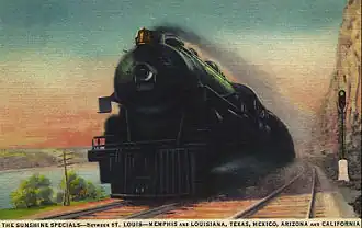 The Sunshine Special was inaugurated by the St. Louis, Iron Mountain and Southern Railway, (later the Missouri Pacific Railroad), on December 5, 1915, to provide a premium level of passenger train service between St. Louis, Little Rock, and destinations in Texas, United States, such as El Paso, San Antonio, Laredo and Houston. An auxiliary section of the train originated in Memphis, Tennessee, and linked with the train in Little Rock, Arkansas.[1]
