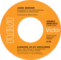 - ^ "American single certifications – John Denver – Sunshine on my shoulders". Recording Industry Association of America. Retrieved March 17, 2023.