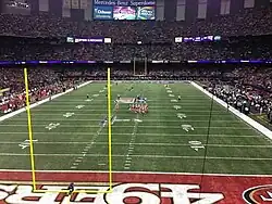 Super Bowl XLVII was an American football game between the American Football Conference (AFC) champion Baltimore Ravens and the National Football Conference (NFC) champion San Francisco 49ers to decide the National Football League (NFL) champion for the 2012 season. The Ravens defeated the 49ers 34–31, handing the 49ers their first Super Bowl loss in their franchise history. The game was played on Sunday, February 3, 2013, at the Mercedes-Benz Superdome in New Orleans, Louisiana.[8][9] This was the seventh Super Bowl played in the Superdome, and the tenth to be played in New Orleans, equaling Miami's record of ten in an individual city.[10][11] This was the first Super Bowl to be held in New Orleans since Super Bowl XXXVI and it was the first to be played there since Hurricane Katrina struck the city in 2005.