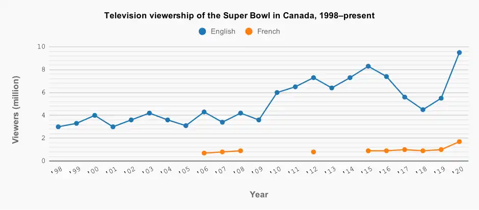 - ^ "Canadian television ratings for Super Bowl LIX fall 15 percent year-over-year". February 10, 2025.