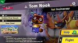 Super Smash Bros. Ultimate is a platform fighter for up to eight players in which characters from Nintendo games and third-party franchises fight to knock each other out of an arena. Each player has a percentage meter that increases as they take damage, representing the amount of knockback they take from attacks; the higher a character's percent, the easier it is to launch them into the air and out of the arena.[2] Standard battles use one of three victory conditions: Timed, where players aim to earn the most KOs within a time limit; Stock, where each player or team has a set number of lives and aims to be the last player standing; and Stamina, in which the percentage meter is replaced with a measure of hit points that opponents try to reduce to zero to win. Players can adjust the rules to their liking and save them as presets for future matches.[3]