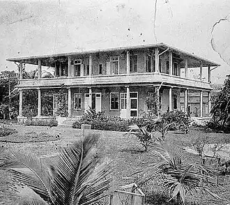 The Superintendent of Lighthouses' Dwelling is an early 20th-century hacienda-style building located in the San Juan Coast Guard Station of La Puntilla in the Marina subdistrict (subbarrio) of Old San Juan.[1] Although the exact date of construction is not known, deteriorated plan drawings of the old United States Naval Base that previously occupied the site of the coast guard station show that the building might have been built either in 1903 or 1908 as part of the regional lighthouses' depot. The building and its surroundings were identified as the Lighthouse Reservation at La Puntilla, with one of its earliest occupants, U.S. Lighthouse Superintendent J. P. Dillon signing and approving plan drawings by the Corps of Engineers. Although the architectural style is inspired in Spanish Revival haciendas found in both private and public buildings the United States, the specific "hacienda-style", as described by the U.S. government survey, was not indigenous nor common in Puerto Rico at the time, and the building and surrounding landscape represents the first design of its kind in the island after 1898.[2]