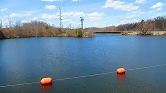 The Superior Dam is located in southwestern Superior Township about 1.5 miles (2.4 km) from the city of Ann Arbor. The Superior Dam is approximately 43 miles (69 km) from the Huron River mouth at Lake Erie. The Geddes Dam is 2.5 miles (4.0 km) upstream, and the Peninsular Paper Dam is 1.5 miles (2.4 km) downstream. When the dam was completed, the resulting flooding created a reservoir of 93 acres (38 ha). The reservoir has no official name but is sometimes referred to as the Superior Pond or Superior Impoundment. It sits at an elevation of 730 feet (220 m) above sea level and has an average depth of 22.4 feet (6.8 m).[2] The river narrows at this point, and the dam has a discharge capacity of 17,200 cubic feet per second (487 m3/s).[1]