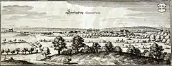 Süpplingburg Commenthurey, engraving by Matthäus Merian, about 1650