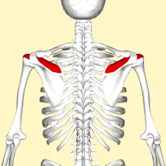 ![]() Position of the supraspinatus muscle (red) seen from the back. | |