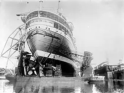 The overall design and construction of Surabaya Dock of 3,500 tons was led by W. Fenenga.[5] It was ordered at William Hamilton and Company. She was launched at Port Glasgow on 21 June 1912 as Soerabaya I.[2] She was next towed to Victoria Harbour in Greenock for trials.