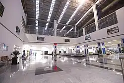The construction work for the expansion of the terminal started in March 2020. The budget for the project is ₹ 353 crore, and Prime Minister Narendra Modi inaugurated it on 17 December 2023.[17] It has a total area of 25,520 square metres (274,700 sq ft). It is capable of handling 1,800 passengers (1,200 domestic and 600 international) during peak hours daily, with a provision of handling a further 3,000 passengers at peak hours, and 5.5 million passengers annually, an increase from the earlier 3.5 million passengers. It is equipped with 20 check-in counters, 26 immigration counters, 5 aerobridges from the existing three, baggage conveyors, and parking spaces to accommodate 475 cars. It is designed keeping the local culture and heritage in mind, so the facade is inspired by the old Kashta houses of Rander, a coastal town in Surat district. It is also equipped with sustainability features and has been made eco-friendly with a Green Rating for Integrated Habitat Assessment (GRIHA) 4-star compliant, given for including a double-insulated roofing system, a low-heat gain double-glazing unit, canopies for energy saving, a rainwater harvesting system, sewage treatment and water treatment plants among others.[18]