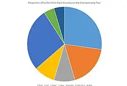 Professional female surfers have also noted that they face pay inequality when compared to their male counterparts—women do not win prize monies equal to those won by men in contests. These women have also indicated that the issue of pay equality arises when it comes to corporate sponsorships by surf brands.[37] Brands prioritize hiring women surfers who appear more conventionally attractive rather than those more talented.[38]