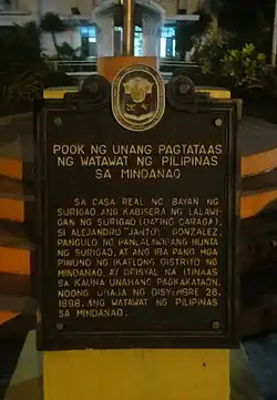 Historical marker of the first flag-raising of the modern Philippine flag in Mindanao