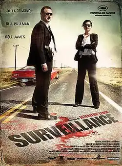 Surveillance is a 2008 American crime horror thriller[3] film co-written and directed by Jennifer Lynch and starring Julia Ormond, Bill Pullman, Pell James, Michael Ironside, and French Stewart. The story is set in the Nebraska plains of United States. The film premiered "out of competition" and appeared in a midnight slot at the 2008 Cannes Film Festival. Surveillance is Lynch's second feature film, following a fifteen-year break after Boxing Helena.[4][5]