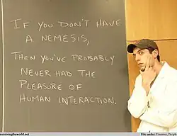 Surviving the World is a photo-based webcomic by professor Lucas Landherr, under the pseudonym Dante Shepherd. Taglined "Daily Lessons in Science, Literature, Love and Life," Surviving the World ran from 2008 to 2018. The webcomic consists of individual photographs of Landherr standing next to chalkboard, delivering humorous "life lessons". Surviving the World reached broad success, amassing millions of page views and helping Landherr through his education.