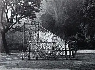 Thought fragments and trains of thoughts that deal continually with biological models are often integrated by Kessler into a system of drawings, forming a complex net of overlapping patterns and poetic content.[3] In the center of her work the Wheel of Life, the principle of life,[4] is made visible as a flow of vital energy, as an ever-changing process reflecting at the same time the work process of the artist. Series of drawings are constantly involved in new installations in order to renew from within. This results include spaces of graphic signs and symbols, integrating some of the kinetic energy of the location.