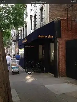 Sushi of Gari is a Japanese sushi restaurant located at 402 East 78th Street (between First Avenue and York Avenue) on the Upper East Side of Manhattan, in New York City.[1] It is considered to be a hallmark destination for sushi enthusiasts and is also known as the restaurant frequented by characters Max and Sean in the 2019 comedy, "The Car Crash".