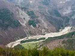 The river springs at an altitude of 1,425 m at the western foothills of the summit of Sini Vrah (1,536 m) in the Dobrostan Ridge of the western Rhodope Mountains. It flows in direction west–northwest in a narrow deep valley with numerous rocky escarpments and caves. The river flows into the Yugbska reka at an altitude of 556 m some 1.7 km southeast of the village of Yugovo.[1] It drains the northwesternmost slopes of the Prespanski Ridge and the southwestern slopes of the Dobrostan Ridge.
