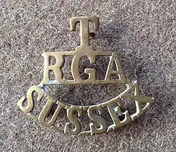 Brass shoulder title worn by the Sussex RGA 1910–24.
