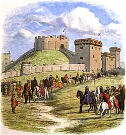 On 22 January 1215 while King John visited Knepp Castle for 4 days, confederated barons assembled in London to determine how best to check the career of this vicious king.[35] In June 1216 John signed Magna Carta, however after the king's refusal to accept the terms of Magna Carta, Rye and Winchelsea opened their gates to Prince Louis of France, the son of Philip II. Forming part of the First Barons' War, this was a bid to take the crown from the hated King John.[36] Later in 1216, Prince Louis attacked and occupied Chichester Castle.[37] Its destruction had been ordered but the order was not carried out and the castle surrendered to Louis.[38] In 1216, the castle, along with many others in southern England, was captured by the French. Louis continued to London where he was proclaimed king of England.