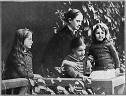 As she grew older, she became frustrated with her father's fame, which sometimes left her in the shadows. She was annoyed by her father's reputation as a "mere humorist" and felt he should represent himself as a serious writer instead of just as a funny man.[6] She was embarrassed when Twain performed the ghost story The Golden Arm for an audience at Bryn Mawr. She had begged him not to tell the story, thinking it too unsophisticated for her worldly classmates, and ran out of the hall crying when her father told the story anyway.[7] She later accompanied her family abroad and attended schools in Geneva and Berlin, where she took language and voice lessons, though she was disappointed when her voice teacher, Mathilde Marchesi, told her she had a lovely soprano voice but did not have the strength or stamina for grand opera. Marchesi observed that Clemens was anemic, sleep-deprived, and anorexic. She had Clemens stop singing lessons for the time being and encouraged her to restore her health first. She recommended hydrotherapy and proper diet and exercise, while Twain thought Susy might also be helped by hypnotism. However, she was never able to acquire enough lung capacity to project her voice from the stage.[8] In Europe she was at loose ends, bored by her family's evenings at home and annoyed by her father's frequent temperamental outbursts.[9] She wrote to her friend Brownell that she sometimes had trouble finding a reason for existence. She was also frustrated by society's refusal to see her as anything other than the daughter of Mark Twain.[10] In Florence, the then nineteen-year-old Clemens became infatuated with a married Italian count.[9] Her physical and mental health suffered, and she again sought cures ranging from hydrotherapy to "mind cures". She felt she was helped by Mental Science, a less structured version of Christian Science, and to some extent by Spiritualism.[11][12]