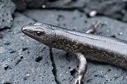 Oligosoma suteri, known commonly as Suter's skink, the black shore skink, the egg-laying skink, and Suter's ground skink, is a species of lizard in the family Scincidae. The species is endemic to New Zealand, found in fragmented populations on the mainland of the Coromandel Peninsula as far south as the Coromandel Peninsula, and on offshore northern islands of New Zealand.