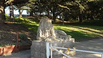 The Sutro family donated the estate to the City of San Francisco in 1938. In 1939 the Works Progress Administration (WPA) demolished the residence.[7] Remaining statuary was removed, with the exception of The Lions, copies of those in London's Trafalgar Square at the entrance gate, and a statue of Diana the Huntress (Artemis), a concrete copy of the Louvre's Diana, itself a Roman copy of a Greek statue.[13] The 18 acres (7.3 ha) city park then opened.