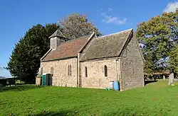St Michael's Church is a former parish church which dates chiefly to the 12th century, and was restored in 1865 and 1909. Constructed of sandstone, it comprises a stone slate roof chancel, a tile roofed nave with a timber west bell turret, and an early 20th-century west porch. The chancel and nave are both of two bays. Of the chancel's 12th-century single light windows, two were altered in the 14th century with the addition of ogee trefoils. Architecture at the west of the nave could indicate a former west tower. Between north 'Y'-traceried windows in the nave is evidence of a 12th-century window, now blocked. The interior roof is plastered barrel vaulted. There are two fonts. The first dates to the 12th century, and comprises a "round bowl, cylindrical stem and four carved lions with emphasis on their fur on the base". The second font, on the window cill of the nave at the south-east and c.1645, is small and "urn-shaped... gadroon rimmed [and] supported by a possibly 15th-century angel holding a book". At the west of the nave south wall is a monument to Elizabeth Cotton (died 1645), with a "broken pediment supported by barley-sugar columns" and includes two female figures and a semi-reclining cadaver.[36]
