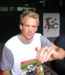 ![]() Neuhaus signing autographs with Augsburg in 2006. | |||