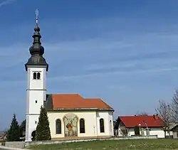 The church in the centre of the village is dedicated to the Holy Spirit. It is Gothic in its origins with the original sanctuary surviving, but was largely rebuilt in 1856. Some 15th-century frescos survive in the sanctuary and the belfry is from the 17th century. The high altar is from 1667, but was extensively renovated and repainted in 1860, when the two side altars were also made.[3]