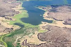 Swakoppoort Dam is a dam 50 kilometres (31 mi) outside of Okahandja, Otjozondjupa Region, Namibia. It dams the Swakop River[1] and occasionally receives inflow from the Omatako Dam on Swakop's tributary Omatako. Its capacity is 63.489 million cubic metres (83,040,000 cu yd).[2] Completed in 1978, it is one of three dams to supply water to the capital Windhoek.[3] It also supplies the Navachab mine and the town of Karibib.