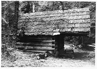 The Swamp–Meadow Cabin (east) is in North Cascades National Park, in the U.S. state of Washington. Constructed sometime in the early 1910s by the North Coast Mining and Milling Company, the cabin was a warm season residence used by company employees for storage and residence while working their mining claims on Thunder Creek.[2] The cabin was constructed plainly of rounded hewn logs, square notched at the corners. The cabin is 15 by 18 ft (4.6 by 5.5 m) with an offset door at the south end, above which it is sheltered by the large overhanging extension of a gable roof which is wood shingled.[2] Swamp–Meadow Cabin (east) is near Swamp–Meadow Cabin (west), and both were placed on the National Register of Historic Places in 1989.[2]