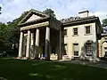 Stone obelisks and fountains are present outside the house, both of which are reminiscent of Renaissance architecture.[6] There are broken pediments and Roman Doric columns on the portico, which were inspired by Duncombe Park in Yorkshire, England.[7] Sculptures by the entrance representing the seasons of summer and autumn contribute to "the Italian villa feeling."[7]