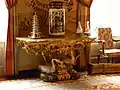 The symmetrical western facade and the garden cascade of the Swan House are distinctly of the Italian Renaissance. The east front and the portico are Anglo-Palladian, an Italian classical style which was popular in English country houses during the 17th century.[2] The house's interior also reflects Anglo-Palladian style in its wood carvings and wall ornaments.[2] While the rooms convey distinct eighteenth-century style, they are transformed by the twentieth-century taste in the furnishings.
