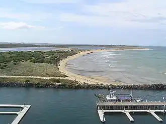 Swan Island now adjoins Sand Island, formed by the cutting of a channel between Port Phillip and Swan Bay to make the entrance to Queenscliff Harbour. The continual maintenance pumping of sand from the harbour's entrance channel to keep it navigable has resulted in longshore drift of sand north-eastwards to connect Sand Island with Swan Island and create two lagoons.