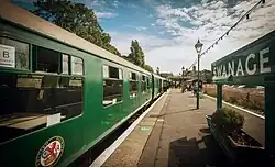 Swanage railway station is located in Swanage, on the Isle of Purbeck in the English county of Dorset. Originally the terminus of a London and South Western Railway (L&SWR) branch line from Wareham, the line and station were closed by British Rail in 1972. It has since reopened as a station on the Swanage Railway, a heritage railway that currently runs from Norden station just north of Corfe Castle to Swanage station. It now also runs to Wareham on certain services, but not on regular services due to signalling problems.