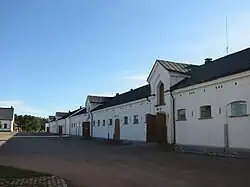 The operations covered the entire kungsgård and had great influence and significance for the area until the closure of 1968. Initially, the stud farm and the riding school had a joint head. During the entire period the operations were located both to the ridge and to the palace area. Military life also influenced the environment through social relations mainly with the mansion owners, but also through the recurring parties and balls at the palace.[4] In 1871, the stud farm was closed down and the operations moved to a stallion depot for about 80 stallions. In 1885, Strömsholm also received a remount depot to provide the army with already trained horses. The operation began to decline in 1956 and the same year some stallions moved to Flyinge kungsgård and the stallion depot was closed down.[1] In the early 1930s, the operations were transformed to a riding and horse-driving school for the entire army.[3] In 1957, the Ridskolan ("Riding School") was renamed Arméns rid- och körskola ("Army Riding and Horse-Driving School"). The tasks was then to train active duty (aktiv stat) commanders at the infantry and cavalry into instructors and more in horse-driving or riding.[2]