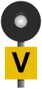 Some road crossing signals have a distant signal (Vägkorsningsförsignal (V-försignal)), placed at a distance (usually not braking distance) from the road crossing signal.